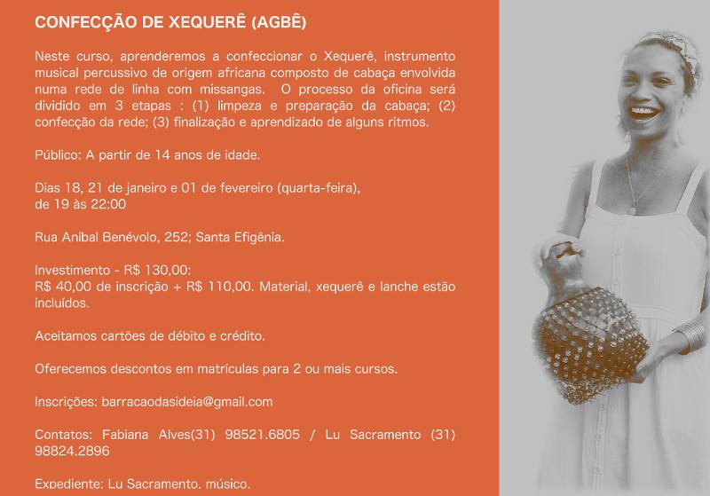18 e 25/01 e 01/02 – Confecção de Xequerê (Agbê) (9h) – Lu Sacramento