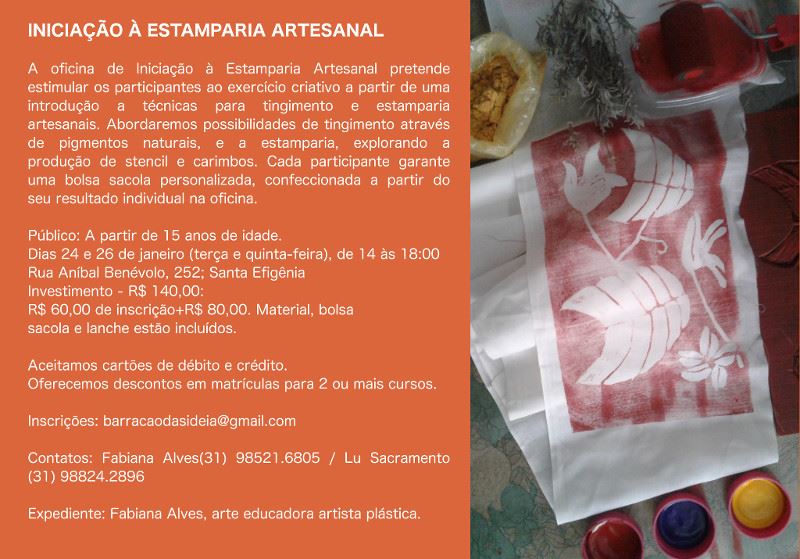 24 e 26/01 – Iniciação à Estamparia Artesanal (8h) – Fabiana Alves.