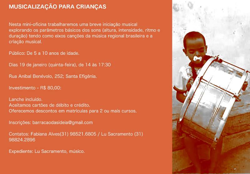 19/01 – Musicalização Para Crianças (3:30h) – Lu Sacramento.